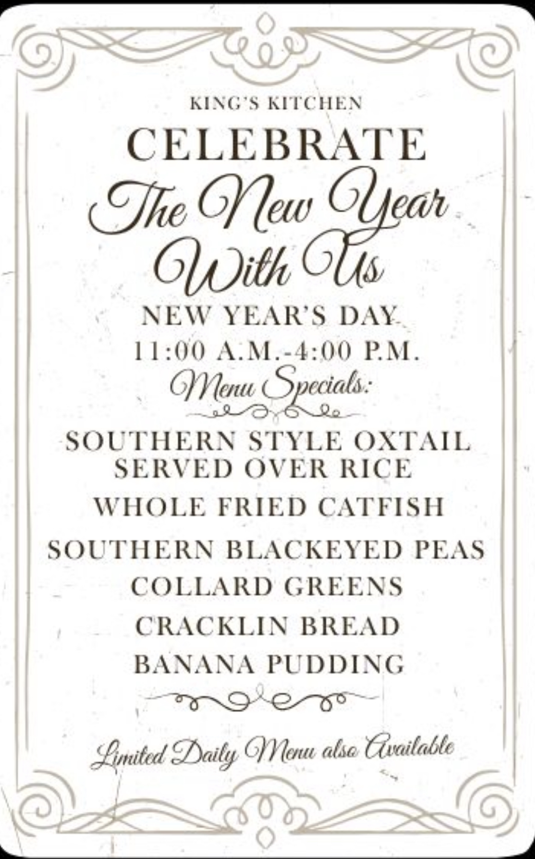 King’s Kitchen has some of the most scrumptious, comfort food served with a spoonful of southern hospitality. Our food has been carefully selected to deliver that taste of quality home-cooked food. King’s Kitchen can deliver an array of southern style food made from scratch—let us guide your taste buds or help you discover the real meaning of home-cooked food.
